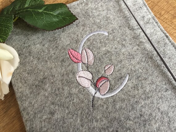 Personalized felt child record book cover with floral monogram - free choice of color!
