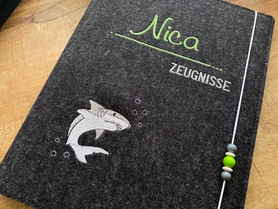 Certificate folder with name - shark - made of wool felt - colors freely selectable - folder for certificates